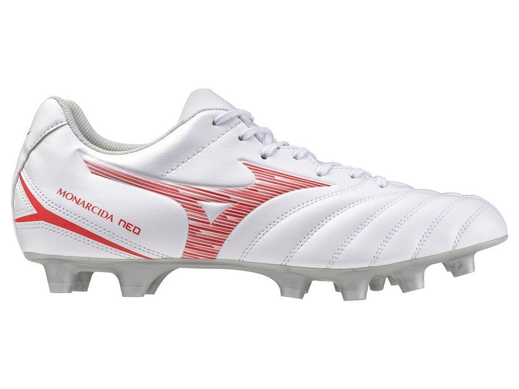 Pánská fotbalová obuv Mizuno MONARCIDA NEO III SELECT MD / White/Radiant Red / 39.0/6.0