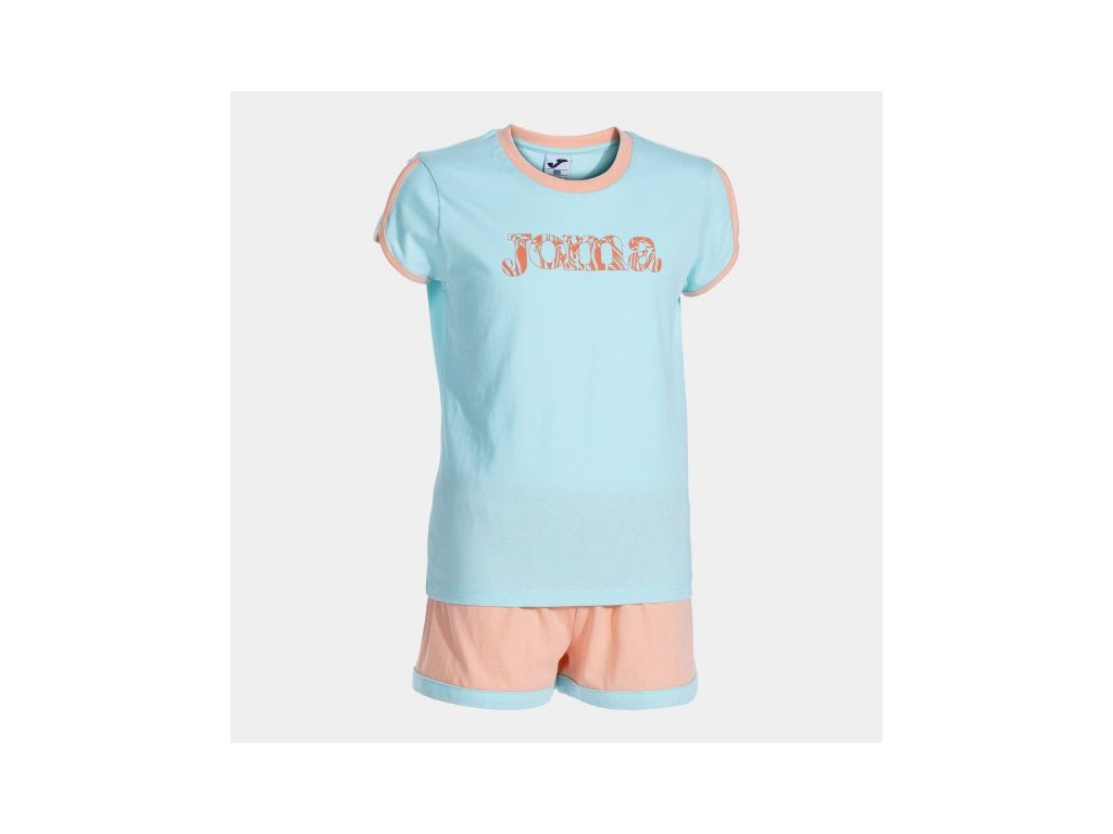 Dětská sportovní souprava, skládající se z trička a kraťasů. Pokud hledáte základní soupravu vhodnou pro jakoukoli aktivitu, tato bavlněná souprava je perfektní. Díky své všestrannosti je super pohodlná pro každodenní nošení i pro fyzické cvičení. Volnost pohybu zaručena.Tričko má krátké zkřížené rukávy a žebrovaný kulatý výstřih. Díky tomu je zajištěno pohodlné nošení. Na hrudi je zábavný potisk loga Joma.